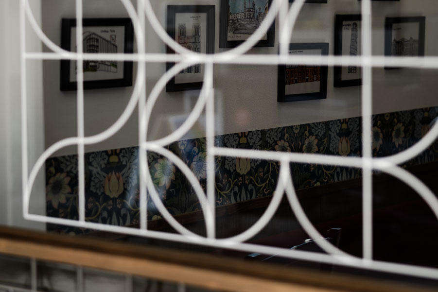 電気屋で使われていた特徴的な照明をそのまま使用し、ボネ仕様に。
